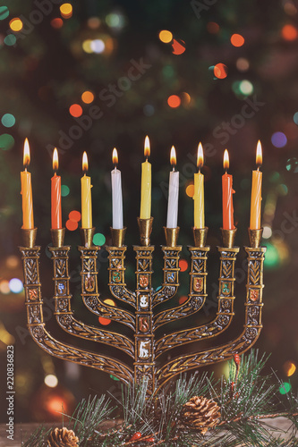 - Brass Hanukkah Menorah With Candles Closeup High Quality Holiday Stock Photos Creative Market