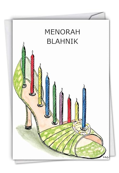 Box Of 12 Menorah Blahnik Happy Hanukkah Cards W Envelopes Funny Jewish Holiday Humor Featuring High Heel Shoe W Hanukkah Candles Celebrate The Season In Style Humor Category B1070 Amazon In Office Amazon Hanukkah Ornaments