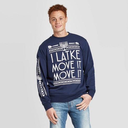 Men S I Latke Move It Move It Ugly Holiday And Hanukkah Sweatshirt Navy Target Edible Hanukkah Snacks